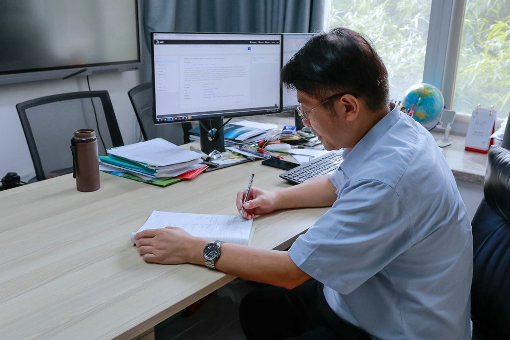 姚道新教授伏案工作