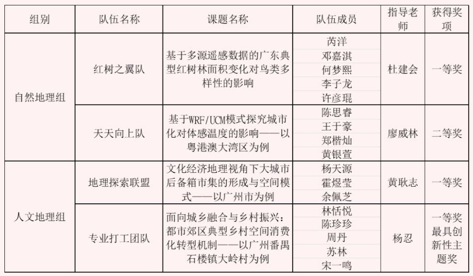 在大赛过程中,来自不同地域、不同高校的队伍相互交流学习,以赛促练共成长。地理科学与规划学院四支队伍在比赛中均展现出中大地理学子良好的科学素养和积极向上的精神风貌,在南方赛区中脱颖而出成功晋级,在总决赛上斩获佳绩。