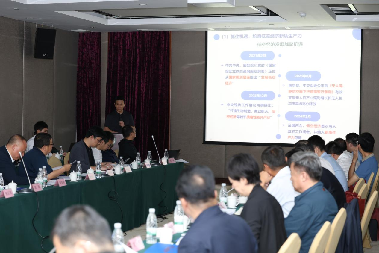 空中交通管理系统全国重点实验室副主任汤锦辉代表项目组作开题工作报告,详细汇报了项目立项背景、研究目标、总体思路、前期基础和预期成果,以及项目的开题准备情况;重点阐述了将该项目定位于低空经济新质生产力,在低空经济区域发展过程中注重体系与局部、规则与场景、安全与责任等问题辩证统筹的总体考虑。
