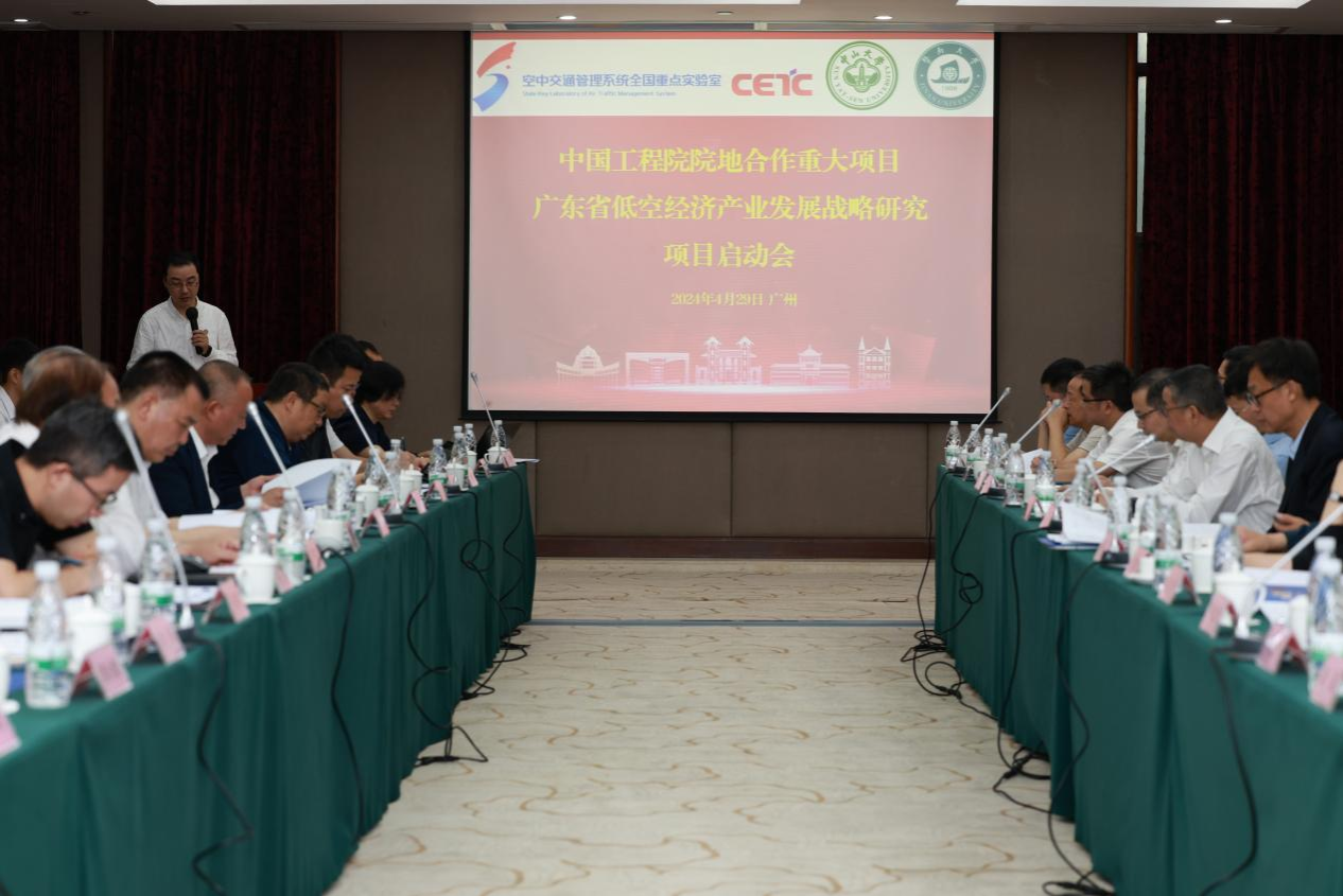 中大新闻网讯(通讯员徐朋)2024年4月29日,中国工程院院地合作项目“广东省低空经济产业发展战略“项目启动会在我校召开。中国工程院院士高文、陈志杰、杨长风、罗锡文、江碧涛,我校副校长、智能工程学院院长(兼)郑跃,中国民用航空局、工信部装备工业发展中心、国家低空经济融创中心、空中交通管理系统全国重点实验室、南部战区空军参谋部、暨南大学、广东院士联合会、广东省大湾区办、广东省发展改革委、广东省科技厅、广东省工信厅、广州市发改委、深圳市交通局、珠海市工信局、江门市发改局、惠州市发改革局、韶关市政府等各级单位的有关领导和专家,广汽集团、广州亿航、深圳大疆、腾讯、东部通航、广州开发区交投等企业专家代表,各课题负责人及成员等70余人参加了会议。
