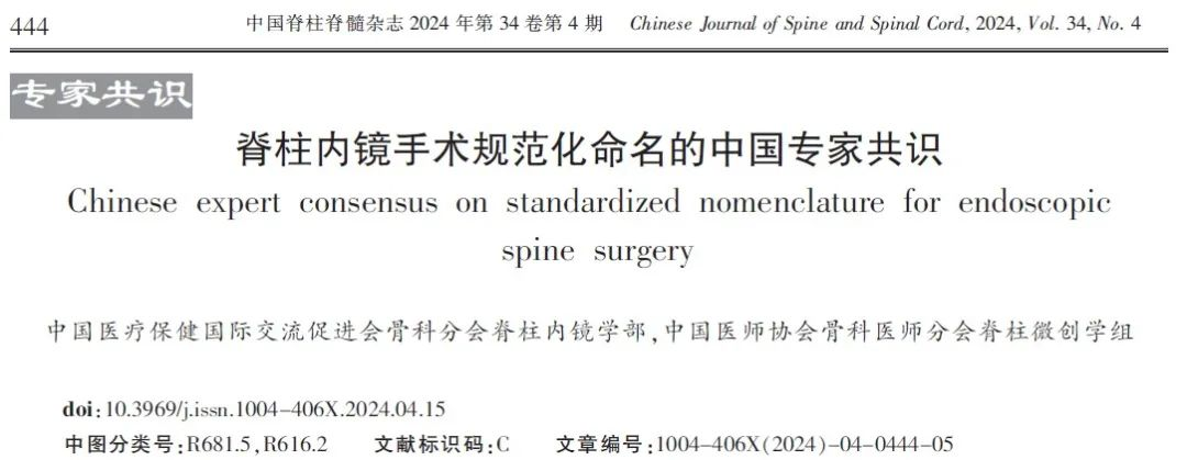 《脊柱内镜手术规范化命名的中国专家共识》