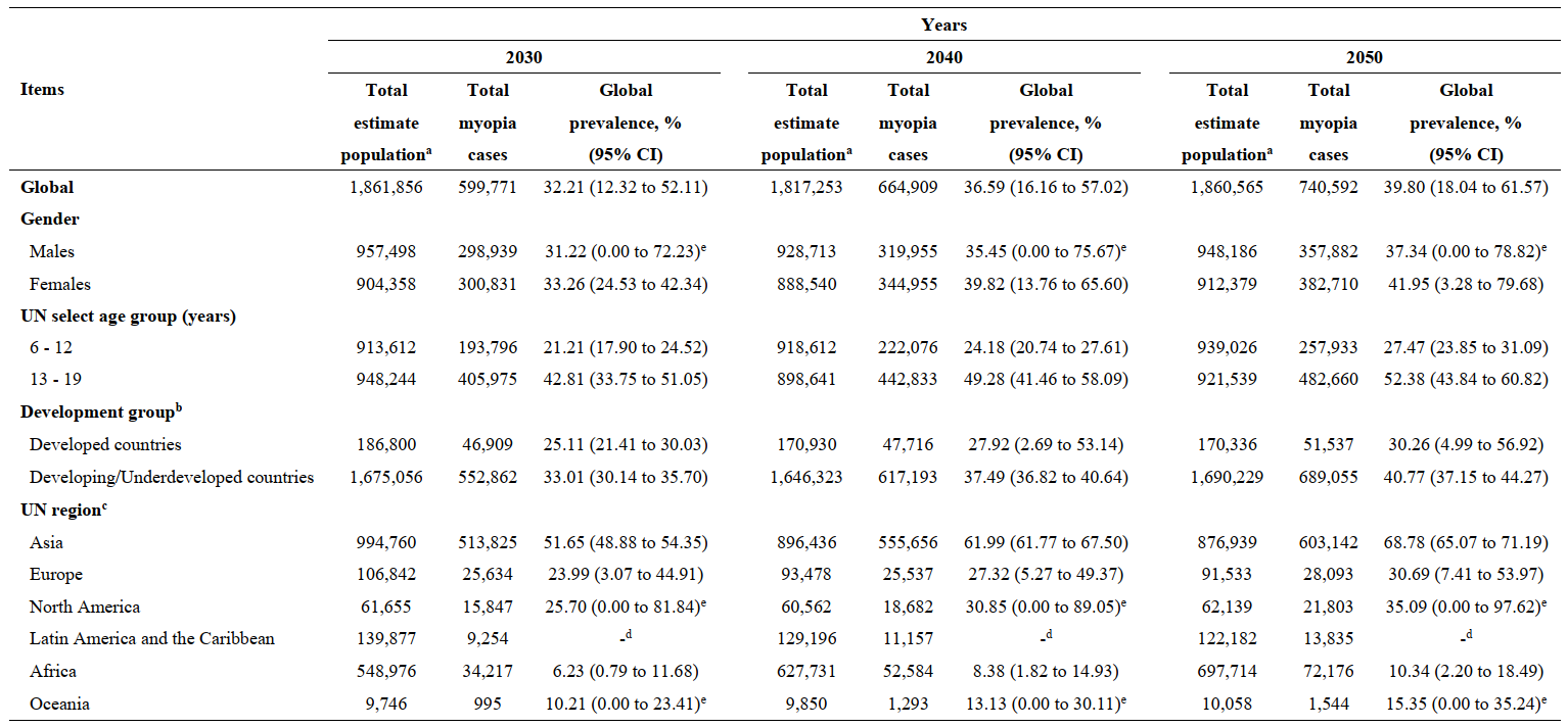 表1 2030-2050年全球儿童青少年近视流行趋势预测分析