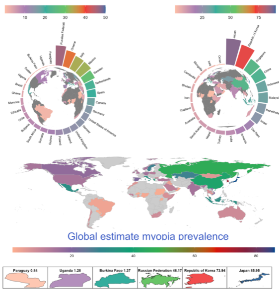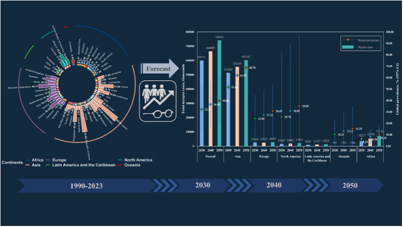 本研究汇总了全球范围内儿童青少年近视患病率的最新证据,采用系统性方法综合了关于近视总体患病率的详细数据,分析其流行趋势并进行未来预测。研究突出了全球不同地区儿童青少年近视患病率的差异,并深入分析了性别、种族和地理位置等多种因素对近视患病率的影响。该研究为全球儿童青少年视力健康现状提供了全面的证据。循证证据建议,儿童和青少年应增加户外活动,减少屏幕时间。考虑到社会、经济和文化背景差异,在公共卫生决策中,相关部门应当更加重视区域化的近视预防策略,以更加有针对性和灵活的方式应对日益严重的视力健康挑战。