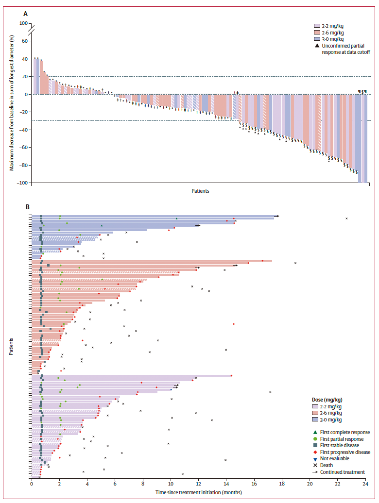 胃癌/胃食管结合部腺癌(A)最佳总体疗效和(B)治疗反应的持续时间