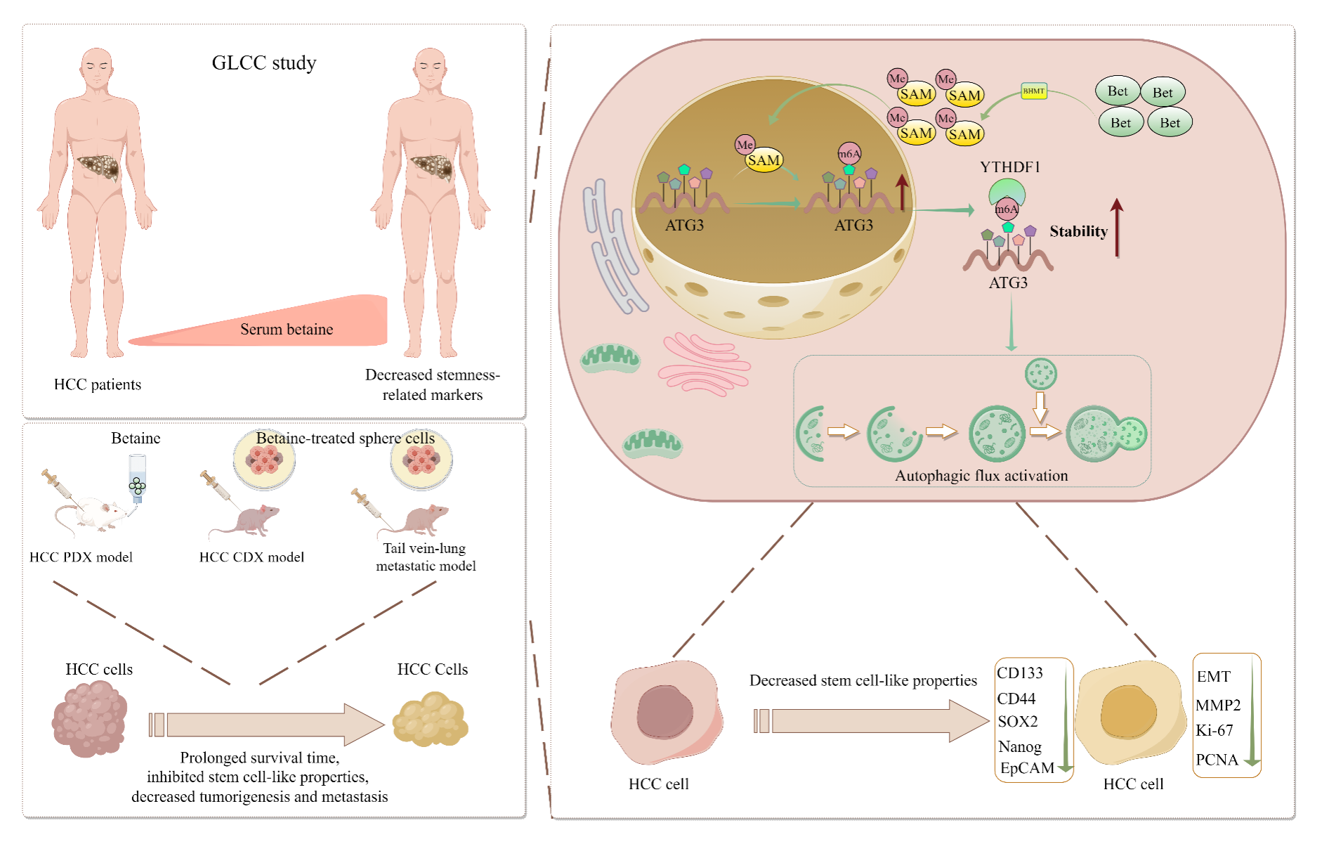 论文链接:Betaine inhibits the stem cell-like properties of hepatocellular carcinoma by activating autophagy via SAM/m6A/YTHDF1-mediated enhancement on ATG3 stability - PubMed