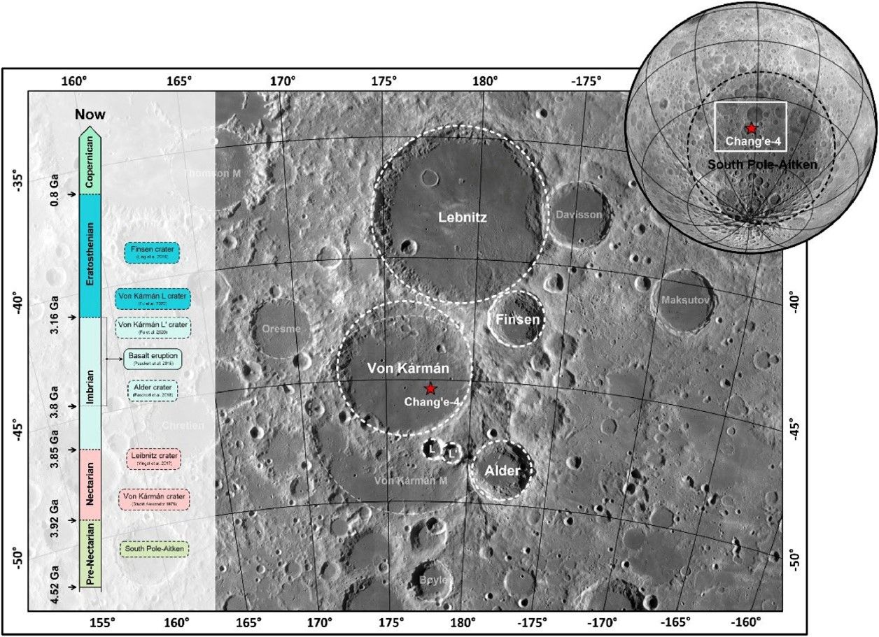 图1 嫦娥四号着陆区及该区域主要地质事件的时间序列。