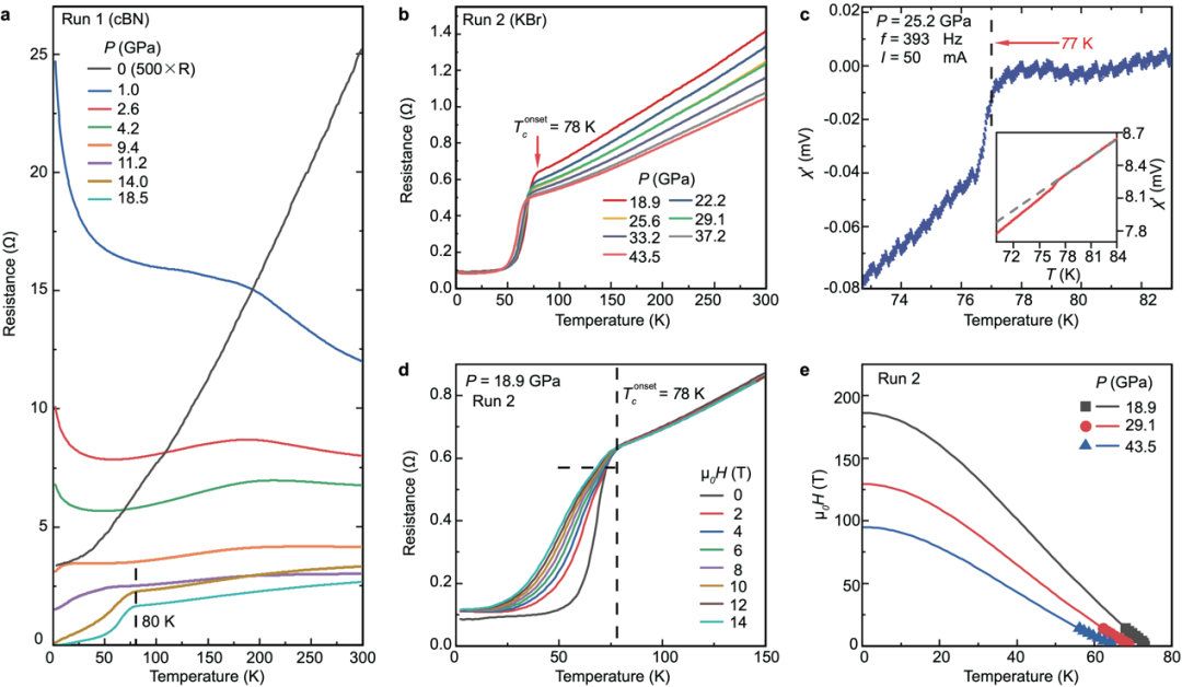 幸运的是,这一次,团队成功了。团队将La₃Ni₂O₇单晶材料在bat365在线中国登录入口高压实验研究平台以及华南理工大学、中国科学院物理研究所、北京同步辐射装置开展实验研究,很快确定了其在压力下转变为超导体,超导转变温度达到液氮温区,高达80K(开尔文)。