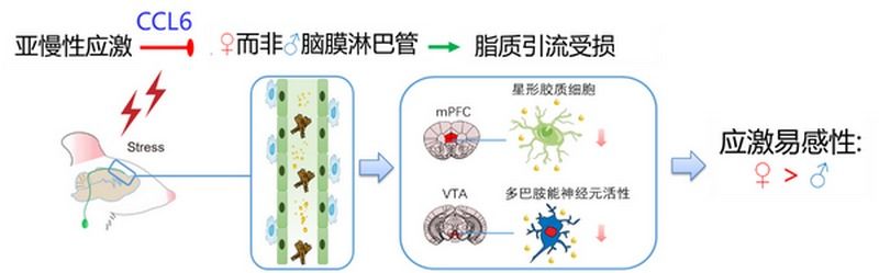 叶小菁团队及合作者发现脑膜淋巴管在调控应激易感性的性别差异机制中的重要作用