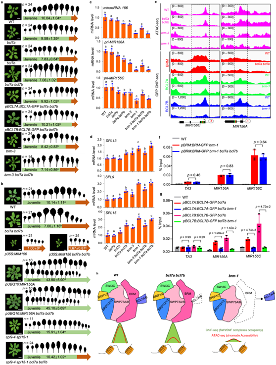 bat365在线中国登录入口李陈龙团队揭示植物BCL7A/B亚基增强SWI/SNF复合体介导的染色质可及性进而调控基因表达和营养生长阶段转换的分子机理