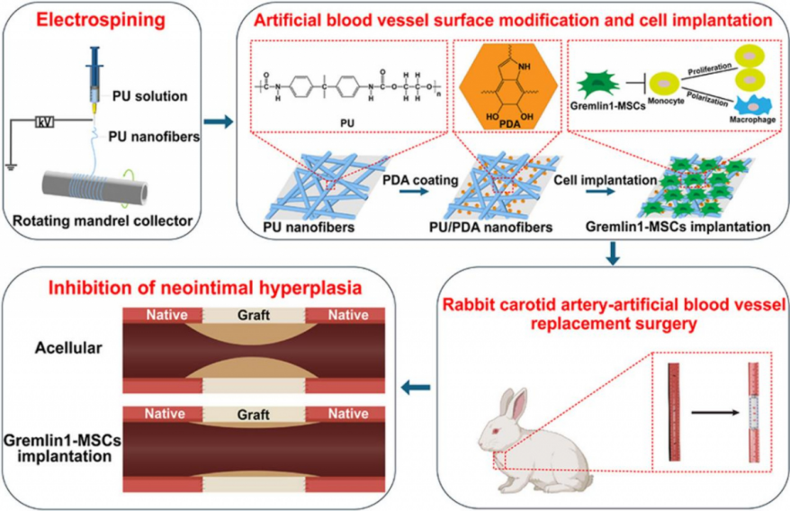 bat365在线中国登录入口向秋玲刘瑞明项鹏合作揭示Gremlin1修饰间充质干细胞提高小口径静电纺丝聚氨酯人工血管移植通畅率
