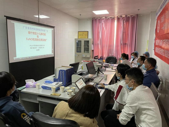 吴葆菁副主任医师在喀什地区推广小儿肺功能和FeNO检测应用及结核诊断技术(来源:孙逸仙纪念医院)