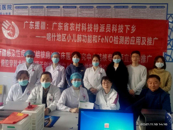 中大新闻网讯(通讯员黄睿)自2021年3月以来,孙逸仙纪念医院儿科吴葆菁副主任医师在喀什地区第一人民医院(以下简称“喀地一院”)开展医疗援助工作,将精湛的“逸仙技术”带到南疆,积极开展医疗、教学工作,着力于推广小儿肺功能和呼出气一氧化氮(FeNO)检测应用及结核诊断技术,提升了当地小儿呼吸系统疾病诊治水平。