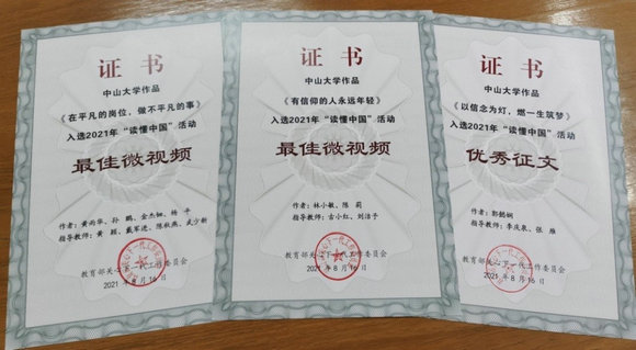 “读懂中国”作品获奖证书(来源:离退休工作处)