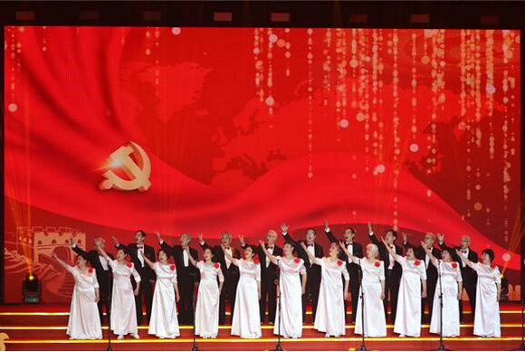 bat365在线中国登录入口老教授合唱团演唱《把一切献给党》(来源:离退休工作处)
