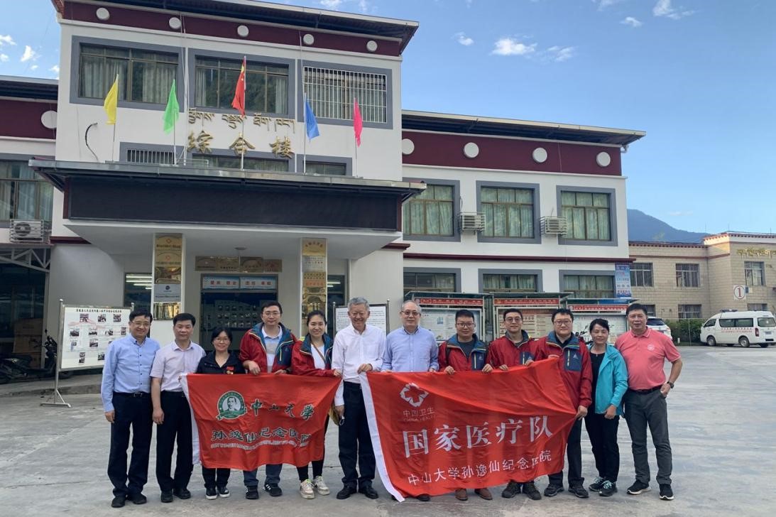 孙逸仙纪念医院连续 5年承担国家医疗队巡回医疗任务。今年 9月17日,根据国家卫健委工作安排,医院选派了由姚和瑞副院长担任领队,乳腺肿瘤中心朱李玲主治医师、心血管内科林永青副主任医师、胆胰外科孙健副主任医师、骨外科李玉希主治医师、眼科宫海军主治医师等多学科专家组成国家医疗队,赴西藏开展巡回医疗工作。
