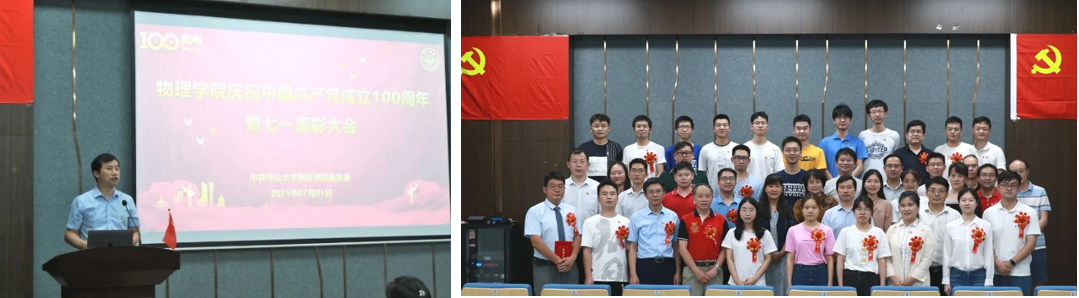 召开“七一”表彰大会,弘扬伟大建党精神。物理学院党委召开“庆祝中国共产党成立100周年暨‘七一’表彰大会”,会上,授予3名荣获学校党史知识竞赛一等奖的成员“物理学院党史学习先进个人”称号,鼓励党员以伟大建党精神为指引,不忘初心,坚定信念,胸怀“两个大局”,心系“国之大者”,矢志拼搏奉献,攻坚克难,为学院和学校事业发展做出更大贡献。