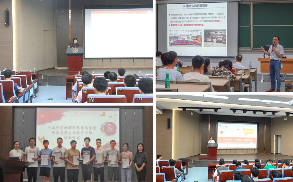 党委书记讲党课(左上),党支部书记讲党课(右上),青马学堂(左下),院长讲党课(右下)(来源:物理学院)