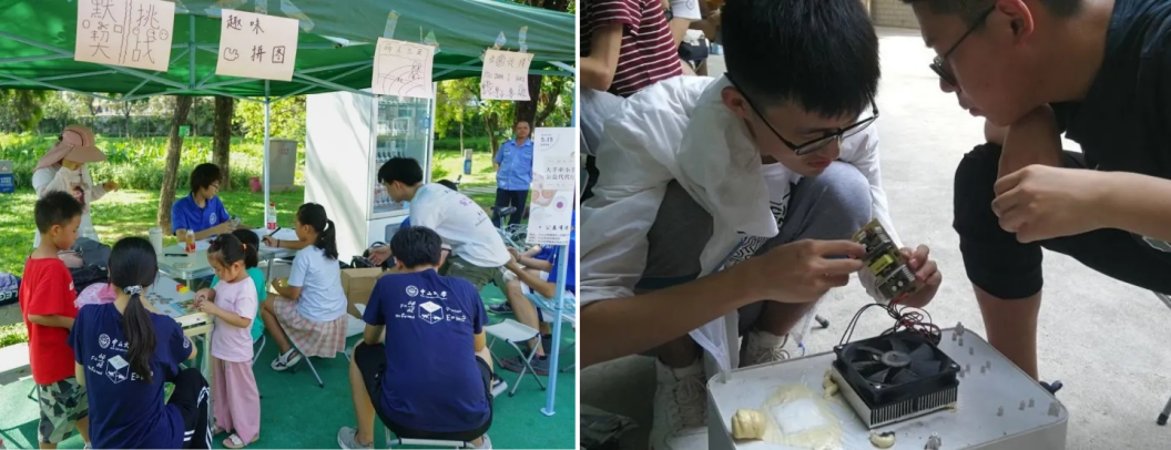 走进社区活动现场(左),家电维修活动现场(右)(来源:物理学院)