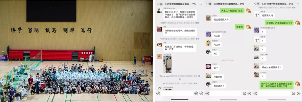学生党支部立即响应,保障核酸检测。今年5月,本土疫情突袭广州,学校响应防疫要求开展全员核酸检测,物理学院学生党支部率先响应学校号召,半小时内组建近50人的志愿队伍,在现场迅速建立起精简高效的核酸检测运作流程,一直奋战到凌晨两点,为全校近两万师生按时完成核酸检测任务贡献了力量,同时为之后的大规模核酸检测探索了更高效的组织流程,积累了宝贵经验。