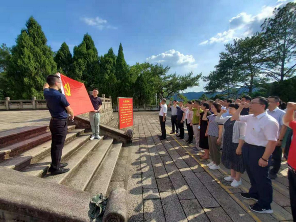 在三河坝革命烈士纪念碑前重温入党誓词(来源:纪委办公室、监察处)