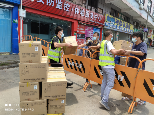 工作人员将腹透液和药品送入疫情管控区域(来源:附属第一医院)