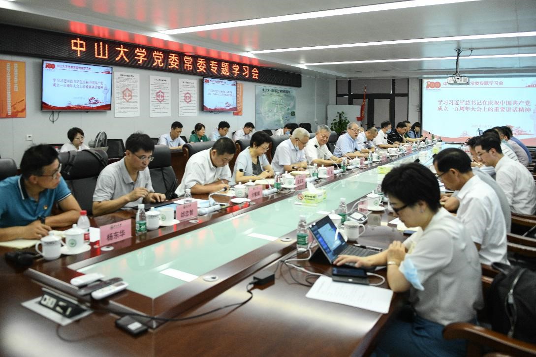 中大新闻网广州7月6日电(记者孙琛)7月5日,我校党委常委会在深圳校区召开扩大会议,专题学习习近平总书记在庆祝中国共产党成立100周年大会上的重要讲话精神。会议由校党委书记陈春声主持。校党委副书记、校长罗俊,党委常委及全体在校的校领导参加会议。
