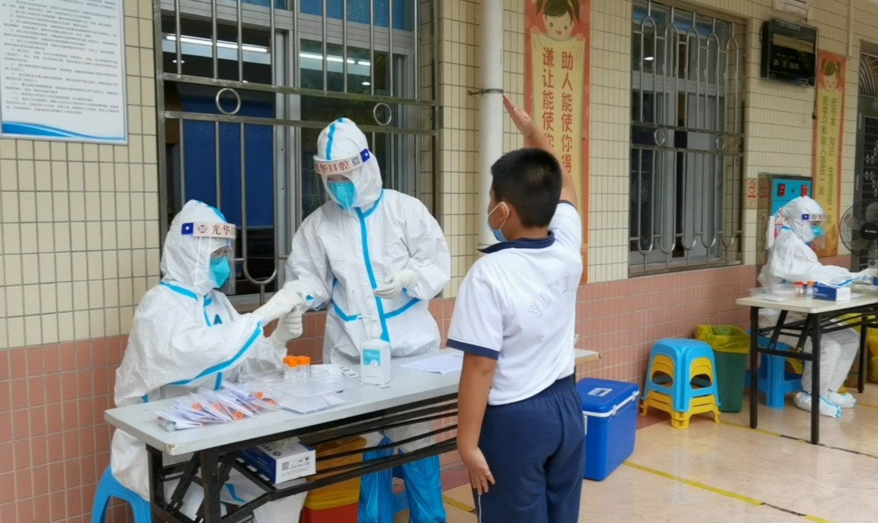 6月10日,附属口腔医院应急突击队接到了家门口的命令——再次支援越秀区核酸检测。200余名医护人员和师生志愿者分五个批次,经历了午间的烈日当头、夜晚的狂风暴雨,从天未亮就出发到深夜披星而归,共完成30000多人次的核酸采样工作。