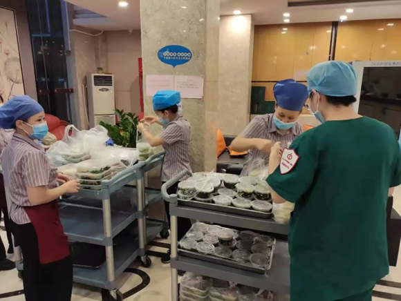 职工食堂将晚餐送到核酸检测队员驻地(来源:附属第一医院)