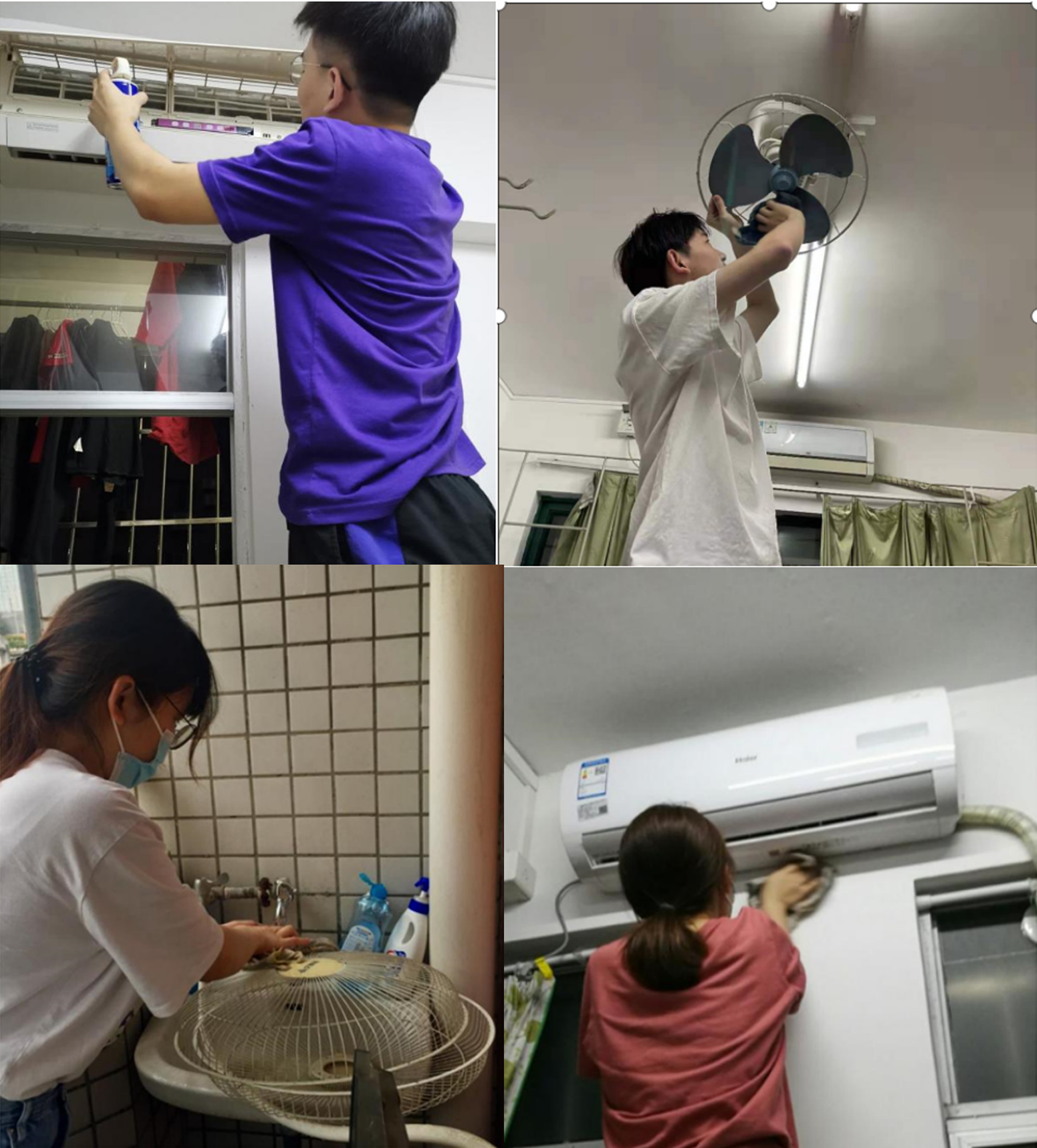 支部成员到宿舍为同学们清洗空调、风扇