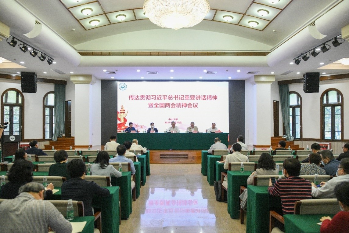 中大新闻网广州3月17日电(记者 陈诗诗 何方)3月15日下午,我校在广州校区南校园召开传达贯彻习近平总书记重要讲话精神暨全国两会精神会议。全国政协委员、校党委书记陈春声,全国人大代表、校长罗俊,全国政协委员、药学院名誉院长陈新滋,全国政协委员、副校长王雪华出席会议。会议由校党委副书记国亚萍主持。学校全体在校的校领导、校长助理,校党委理论学习中心组成员,各二级党组织负责人,校党群机关部门、各二级单位行政负责人,各级人大代表、政协委员、政府参事、文史馆员,民主党派省委会副主委及省直基层组织负责人,统战团体负责人等参加会议。