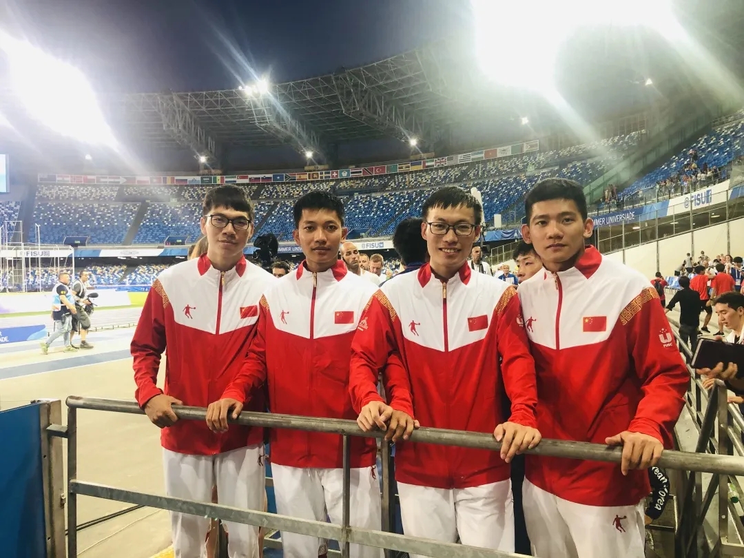 ▲我校短跑名将禤达军同学(右一)摘得世界大学生运动会男子4×100米接力赛银牌