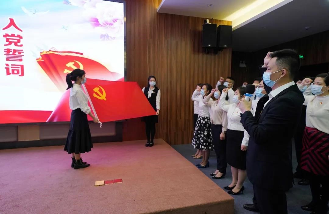 防控疫情第一线预备党员入党宣誓仪式(来源:附属第五医院)