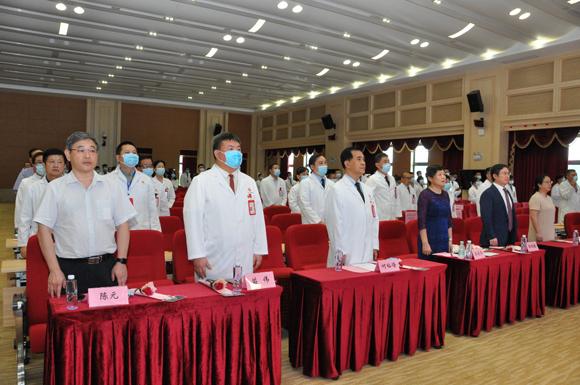 全体起立,奏唱中华人民共和国国歌(图片来源:附属第七医院)