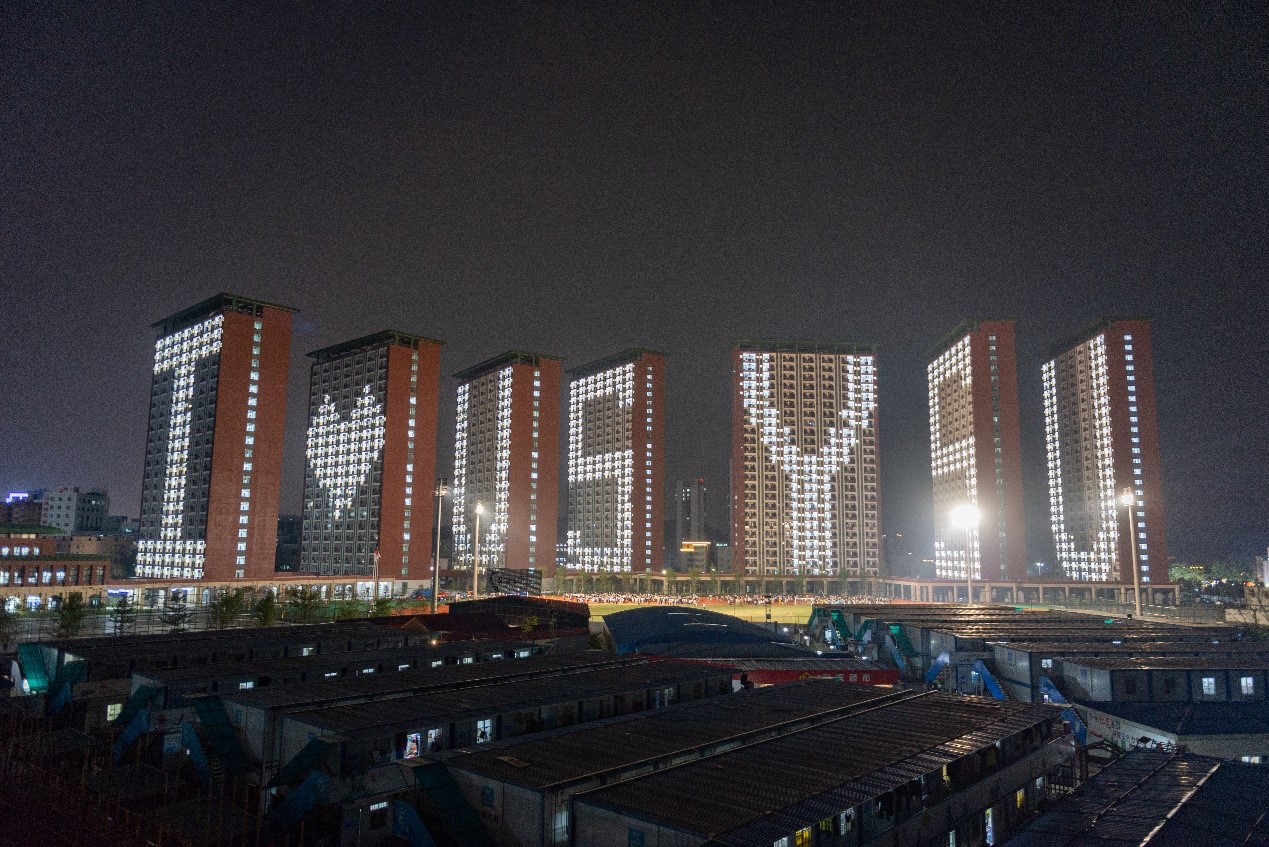 全体学生合唱《bat365在线中国登录入口校歌》,每栋宿舍楼一侧楼面超过280个宿舍房间同时亮灯,七栋宿舍楼顺次形成I❤USYSU(我爱你bat365在线中国登录入口)七个字样。随着《山高水长》歌声响起,生活区、运动场、食堂、坪石路、逸仙大道、教学楼的灯光依次亮起,校园里呈现出美轮美奂的视觉盛宴。师生们挥舞五星红旗,鼓掌欢呼,仪式在《歌唱祖国》的歌声中圆满结束。