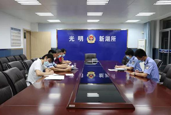 6月8日,深圳校区保卫办与光明新湖派出所召开工作会议(图片来源:保卫处)