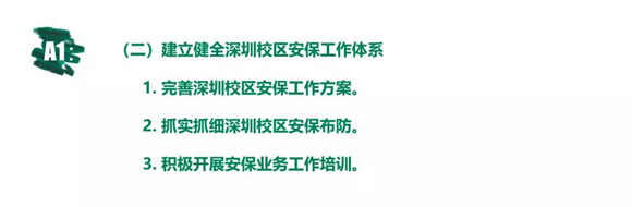 学校将持续深化深圳校区安保体系建设,不断提高深圳校区的安全指数,大力推进保卫工作,有效落实安保措施,守护师生和学校的平安!