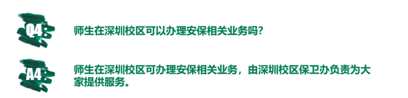 在进驻深圳校区前,保卫办未雨绸缪,做好充分准备工作。进驻深圳校区后,保卫办及时排查,解决校区安全盲点,为学校师生进驻保驾护航。为让大家更深入地了解深圳校区安保工作情况,我们准备了这份深圳校区“安全保卫Q&A”。