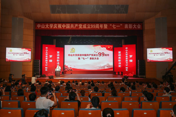 新闻网讯(记者 赵现廷)7月1日下午,我校庆祝中国共产党成立99周年暨“七一”表彰大会在梁銶琚堂召开。教育部党组派驻bat365在线中国登录入口党建工作联络员、广东省委组织部及广东省委教育工委有关同志,校领导、校长助理、院士代表和党外人士代表、各二级党组织负责人、校机关各部处室负责人,优秀共产党员、优秀党务工作者、先进基层党组织以及师生代表共500余人出席。大会同时通过学校融媒体平台进行直播。