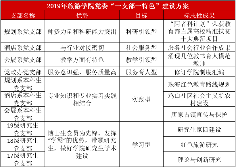 2019年旅游学院党委“一支部一特色”建设方案(来源:旅游学院)