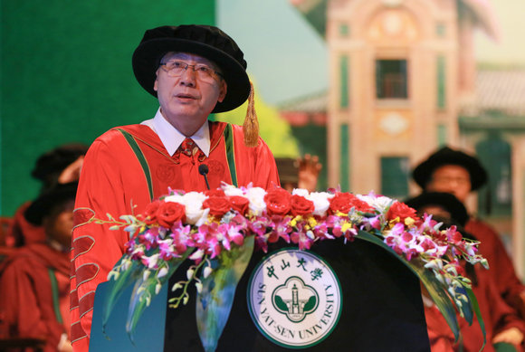 亲爱的同学们,中山先生“立志做大事”的殷切期望镌刻在怀士堂前,也希望深深地镌刻在你们的心间。大事不必一定是宏大的事,牢记“为社会福,为邦家光”,始终做对国家、对社会有益的事情,做好本职的事,做好身边的事,就是做大事。现今,我们的祖国正在实现伟大复兴的历史征程中不断前进,你们建功立业的人生黄金时期,正好与祖国“两个一百年”奋斗目标的实现历程同向同步同行。希望诸位不断锤炼坚强意志和品格,抱有奋勇争先的进取精神,保持乐观向上、脚踏实地的人生态度,善学善思善行,自信自律自强,将自己的人生投放在国家事业发展的历程,争做走在时代前列的奋进者和开拓者,做成一番事业,做好一番事业!