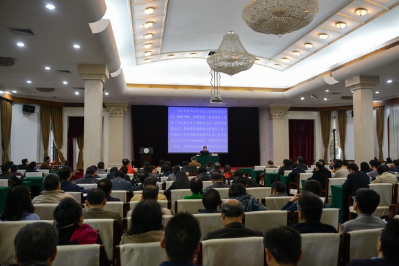 11月25日下午,按照学校“两学一做”学习教育的工作部署,以及“bat365在线中国登录入口第十五期新上岗中层干部培训班”的培训安排,我校在广州校区南校园召开了学习贯彻党的十八届六中全会精神宣讲报告会。报告会邀请第十二届全国人大常委会委员、第十二届全国人大常委会内务司法委员会副主任委员,中国社会科学院原副院长、党组副书记李慎明研究员作专题报告。报告会由校党委书记陈春声主持。学校中层干部近300人参加报告会。