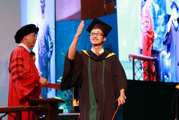 从主礼台上走下来,旅游学院优秀本科毕业生吴传龙仍难掩激动:“佩戴上优秀毕业生荣誉绶带毕业,我感到很自豪,同时这也是对我的一种鞭策。我在中大的生活仍要继续,我希望我可以追随学校建立的国际一流大学的步伐,心怀家国,努力扩大自己的学术视野,”