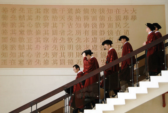 笑声还回荡在每一处红砖绿瓦,离歌却在青葱古木下悄悄唱响。梁銶琚堂内,红领黑缎,流苏飞绿,权杖仍在礼台上静静地注视,见证学子们接过证书的神圣时刻。为社会福,为邦家光。勖哉诸君,努力自强。