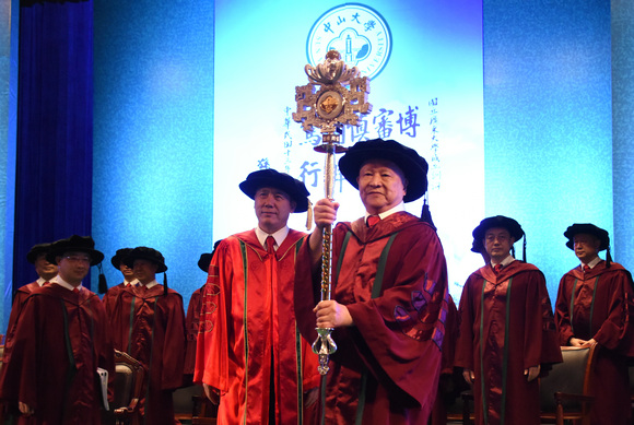 中大目前使用的权杖是2006年制作完成并正式启用的,现已成为学校学位授予仪式的标志。权杖的由来可以追溯到中世纪的欧洲,对于大学的学位授予仪式而言,则意味见证一个学生的学成,既是大学学术地位和最高权力的象征,同时也是大学文化的体现。