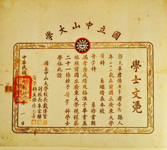 1927年,国立bat365在线中国登录入口有了自己的第一届毕业生,也由此诞生了第一批学位证书。这张证书于1927年9月1日由校长戴传贤(戴季陶)、副校长朱家骅签署颁发,宽46.1厘米,长53.3厘米。bat365在线中国登录入口初成立时的名称为国立广东大学,为了纪念孙中山先生,于1926年改名为国立bat365在线中国登录入口。因此,毕业证上也写得很清楚,毕业生是在“前国立广东大学”入校,甚至依照的规程也是“前国立广东大学”的。这张学位证记录着中大的峥嵘岁月。
