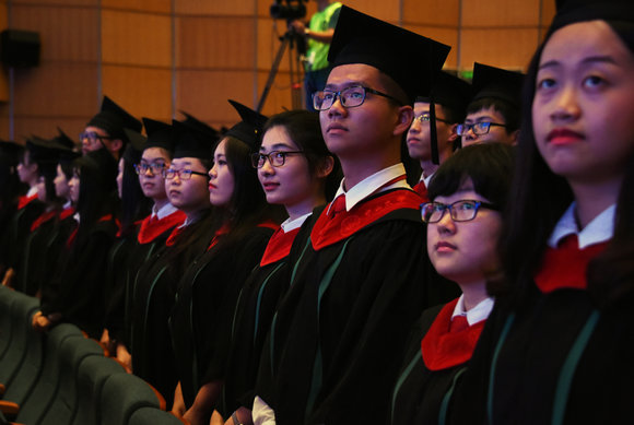 身着学士服的毕业生(蔡珊珊 摄)