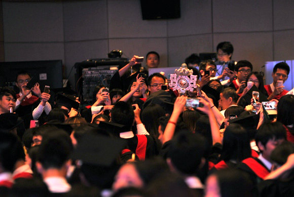 24日,梁銶琚内举行了四场仪式,中国语言文学系、历史学系、哲学系、博雅学院、亚太研究院、港澳珠三角研究中心、法学院、教育学院、社会科学教育学院、心理学系、管理学院、传播与设计学院的毕业生,在庄严的典礼中接受洗礼,整装启航。