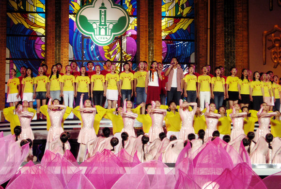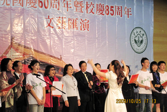 80周年校庆晚会上,在bat365在线中国登录入口艺术教育中心徐红副教授的指导下,《山高水长》作为晚会压轴的歌曲,由中大附属小学学生、校园歌手、学生合唱团、教工合唱团、老教授合唱团的团员们共同演唱,感染了在场的众多师生。