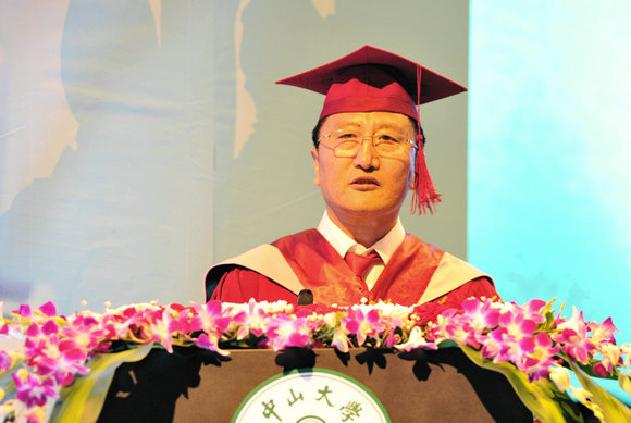从今天起,在座的许许多多同学与28年前的我一样,即将离开母校,走向社会、走向工作岗位。此时此刻,我作为中大毕业的老学长说几句发自内心的话:人生要有理想和信念,学问要有深厚的功底,做人要有道德和情操,工作要有干劲和精神。有了这几条,你无论走到哪里,都是一个受欢迎的人,是一个有用的人,是一个名副其实的中大毕业生。