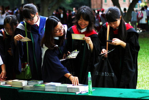 每个U盘上都印有一个独特编号——毕业生的学号,正面图案是外国语学院大楼,背面则是手绘的康园北门牌坊,这正是2014届外国语学院毕业生的毕业礼物,虽然看似普通,但每一份其实都是满含心意的“私人定制”。
